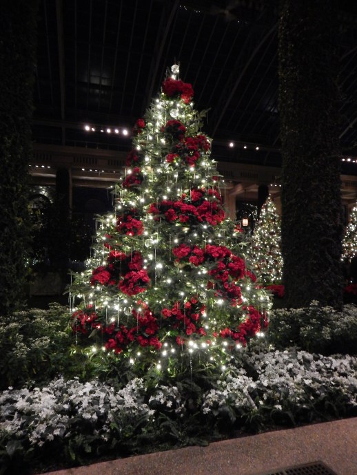 Every year since around 1922, Longwood Gardens in Kennett Square Pennsylvania has put Christmas lights on display throughout their conservatory and the gardens. They have over 6,000 seasonal flowers on display. My daughter, her friend Nicole and I went to see the display this year and we were not disappointed!