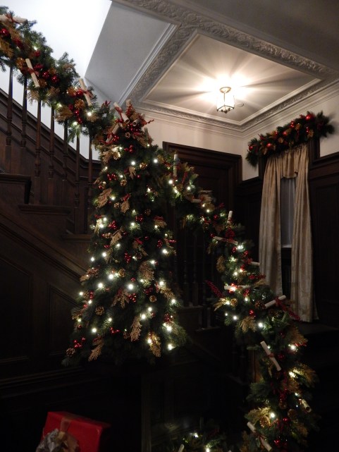 Wow, what beautiful decorations! The garland going down the stairs is gorgeous.